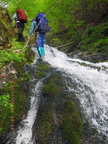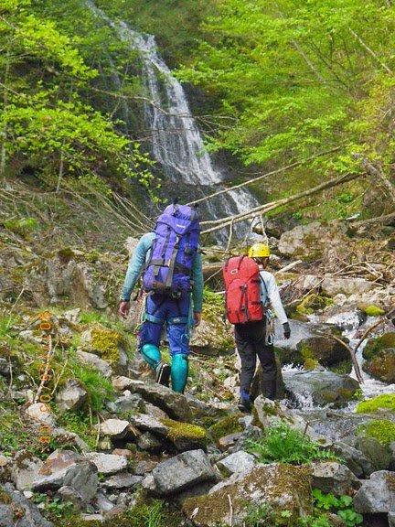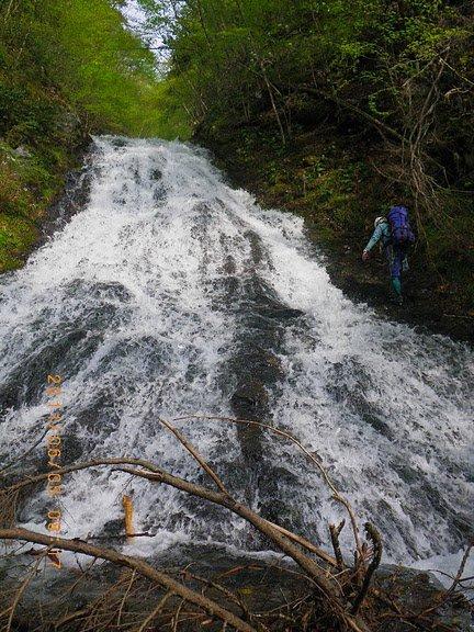 シャワークライムを覚悟し水流の弱点を突いて次々と突破して行くが、やはり越えられない所は高巻きである。