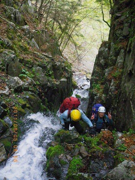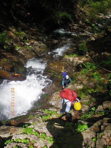 梅雨時期のため水量が多い、登攀が難儀しそうだ(^_^;)