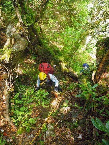 駐車場から沢床まで約200mを踏み跡を頼りに下降していく。