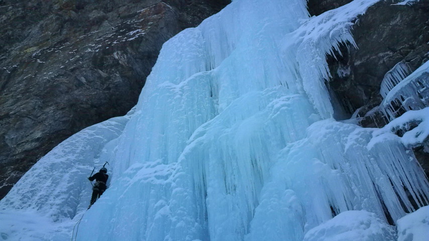 9日戸台の駐車場は車でいっぱい。長い河原歩きで丹渓荘へ。舞姫の滝に行くと誰もいなくて貸切でした。南面だけあってとても温かく、祥子嬢より「ぬるいな~こんなんでいいのかなぁ」とのこと。F1は水氷、F2は堅い氷り。F3の舞姫の滝は摩利支天を小さくした感じでムーブが楽しかったです。その先のF5まで行きましたが、しょぼくて登らず終了。後から若者チームが来て、F3を登ってましたが、「ここどこですか?」と聞かれおもしろかったです。