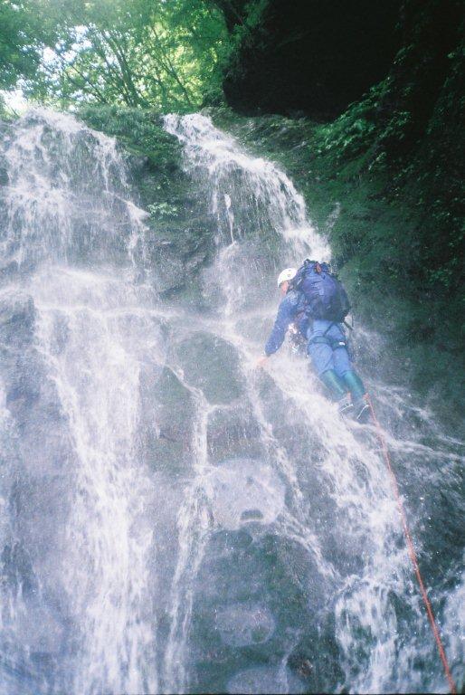 後続が次々に降りてきそうな雰囲気を感じ、早々に準備を整え二番手で逆川へ入渓した。
