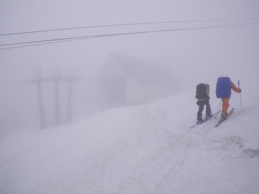 1日目、小雨と霧と強風の中、岩内岳登頂。目国内岳とのコルで泊。