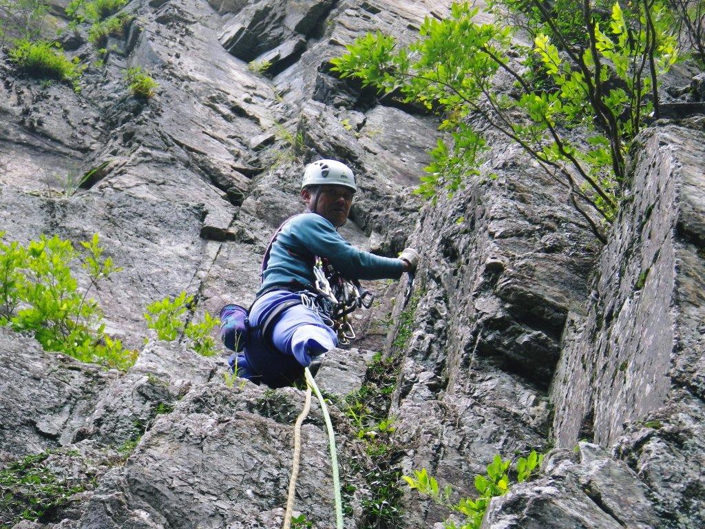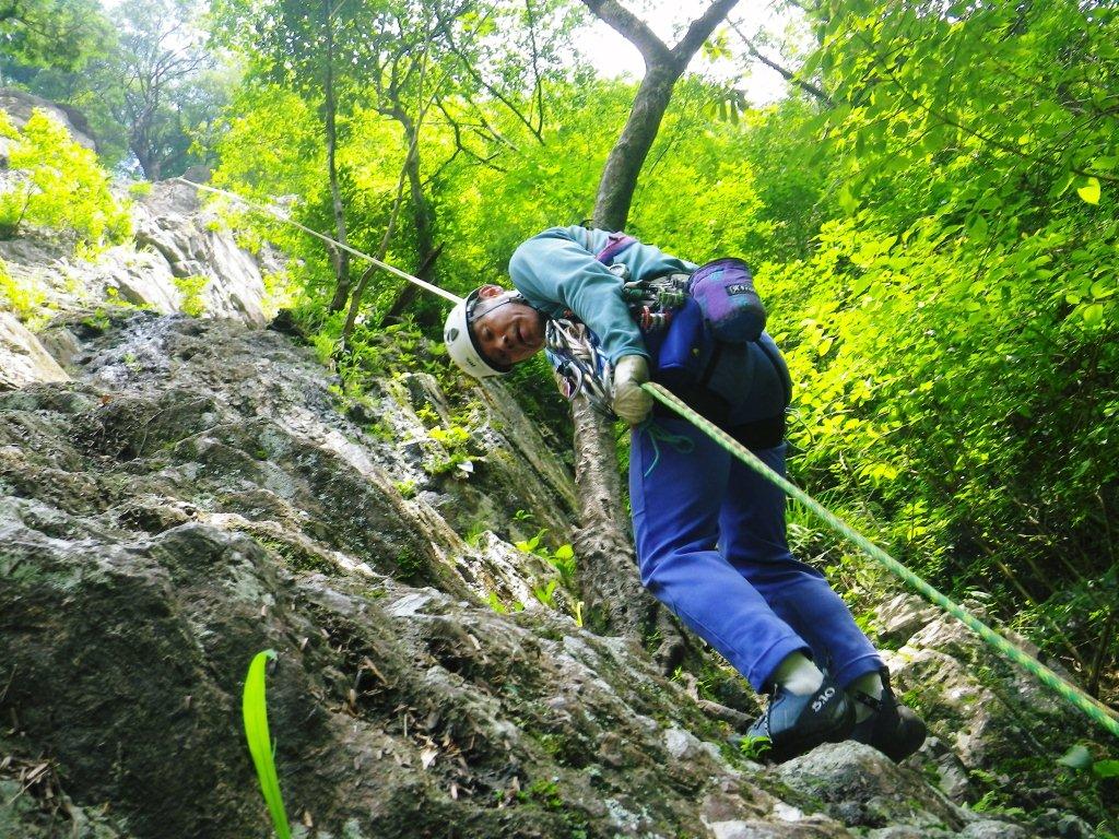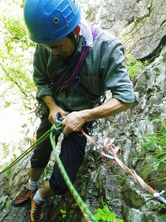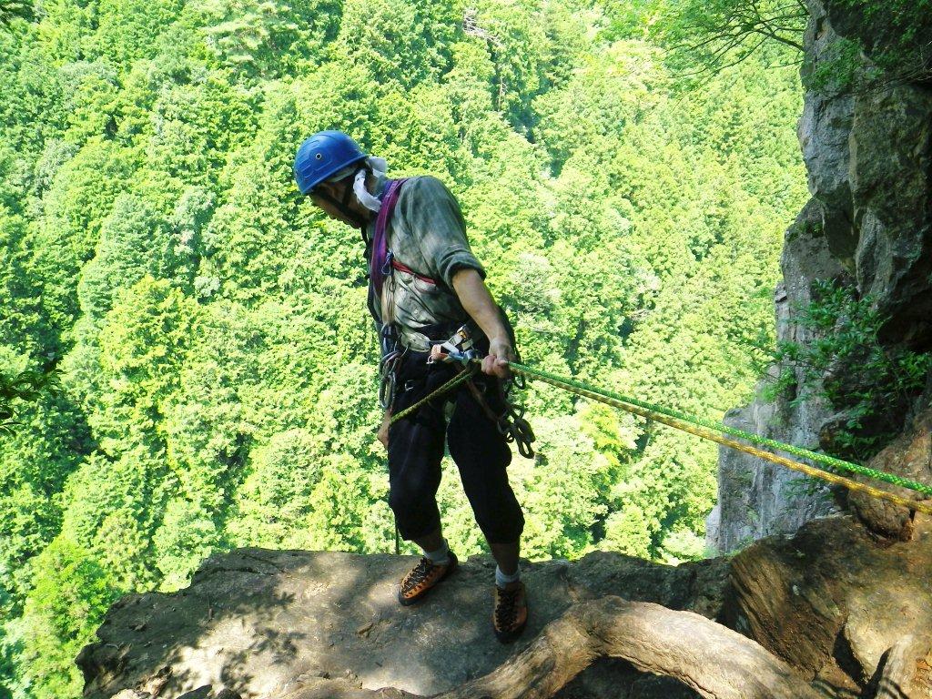 登り終えて、懸垂下降。
