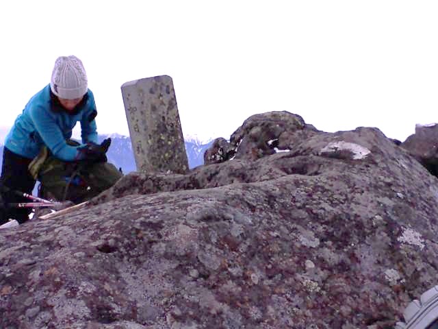 二人して急登に喘ぎながら、ようやっと前三ッ頭のピークを踏んだ。