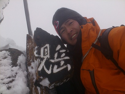 稜線からは足を止めるほどの風と所々膝までのラッセル。例年に比べて雪が多く予定通り?雪山を堪能。山頂が見つからず、探したら標発見!「権現岳」が割れて「見岳」になってました。見岳で強風に身を縮ませながら記念撮影。