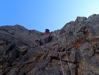 私達は、ボルトが打たれているルートからスタート。1ピッチ目は久し振りのアイゼン岩登りで非常に難しく感じました。