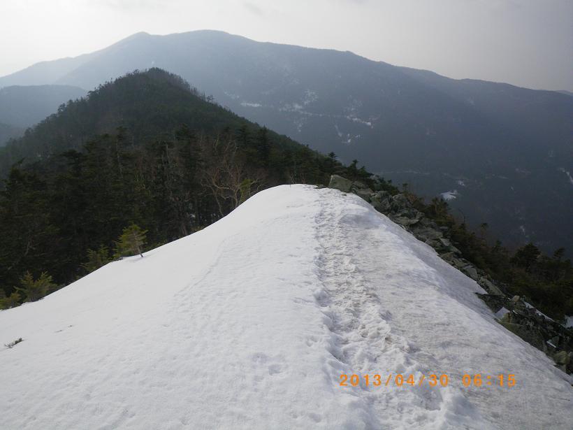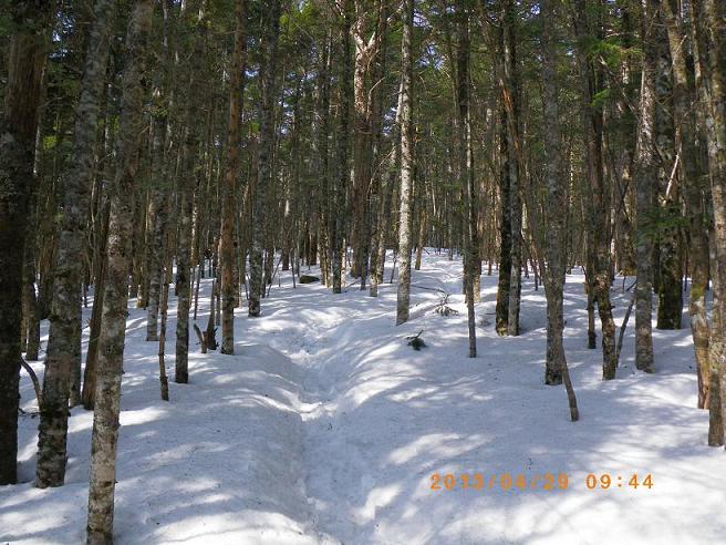 大弛小屋までさらにグズグズの雪を国師ヶ岳から30分歩き