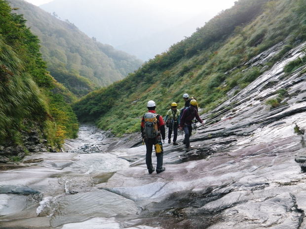 下部沢は水量が多めなのかナメ岩が濡れて滑る。