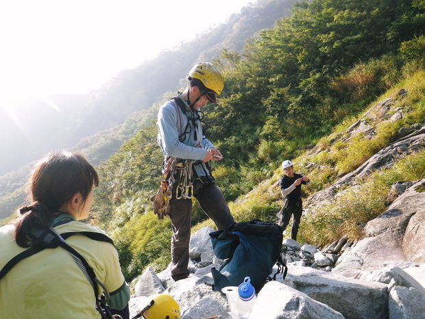 今回の下降ルートは、ノコ沢奥壁から懸垂降下でノコ沢を下降するルート。