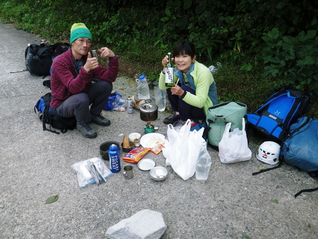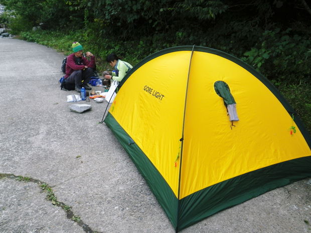 先ずは昼近くに所属山岳会三名で先行し谷川岳ロープウエイ駐車場に到着、北海道組の荷物も運びこみ乗合タクシーで一ノ倉沢出合いへ移動。