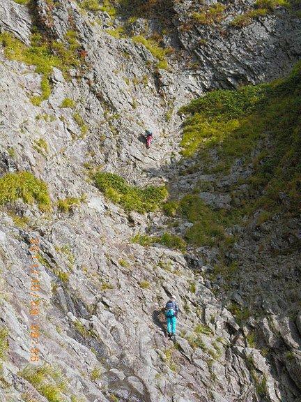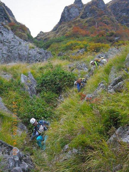 しかし、世の中は甘くなく、草付きの藪漕ぎで、しかも急傾斜で滑る狭い濡れたルンゼ登りには参った・・・(^_^;)