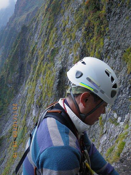 何とか3ヶ所、リングボルトとハーケンを発見しランニングビレイを取った。
