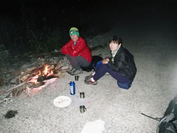 薪拾って焚火に火を付ける、炎が安定すると身体も暖まり心も和む。