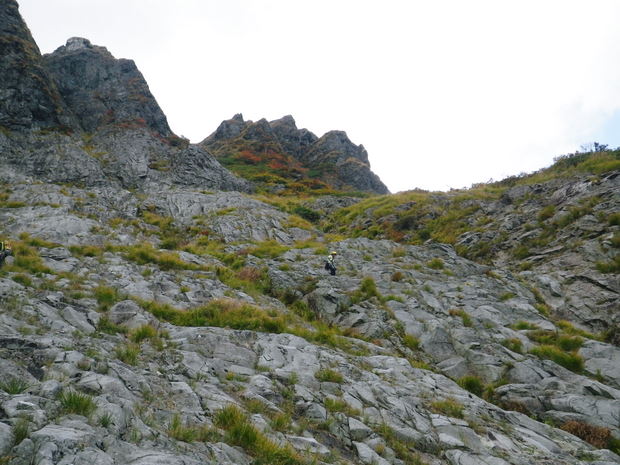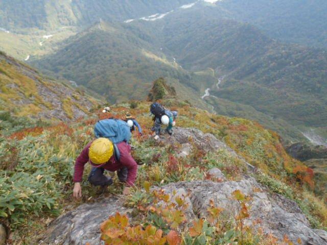 この先はロープは不要で、フリーで堅炭尾根までの登り。