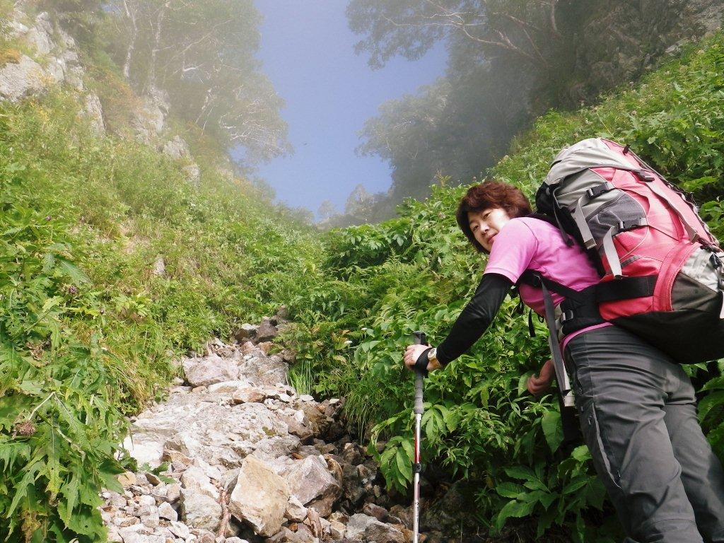 さぁー!ここからは北鎌沢出合いまで道程は悪いが、降り一辺倒のため喘ぐことはないだろう。