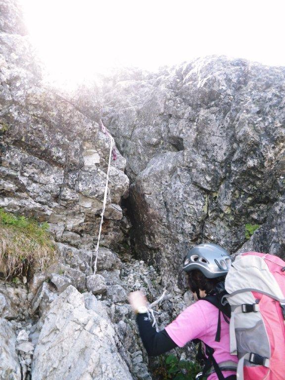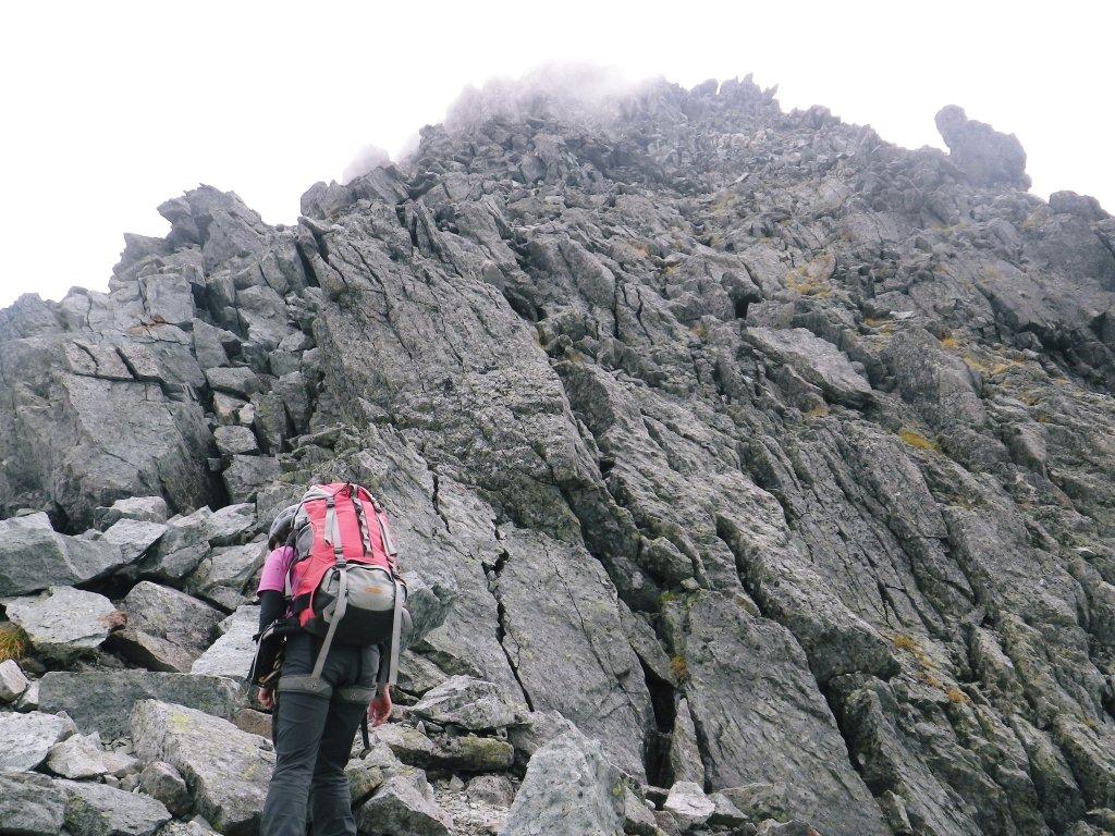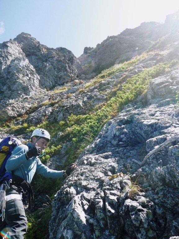 独標チムニーに登りに掛かる祥子ちゃんと、チムニーを越えて独標山頂に向かうおいら