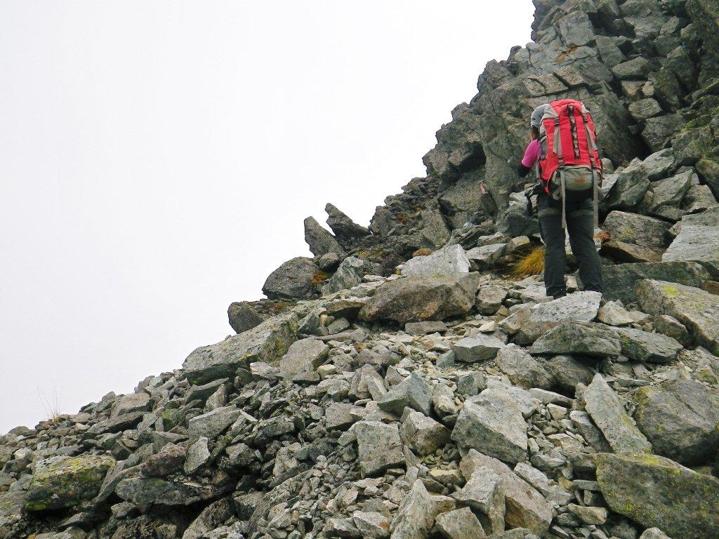 そして、数個の大岩を越え、忠実に右俣を詰めて程なくしてコルへ出た。