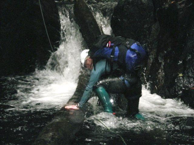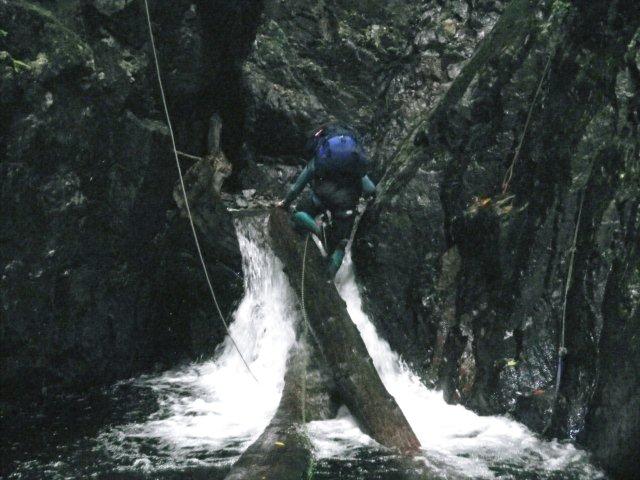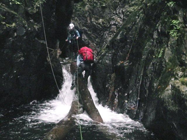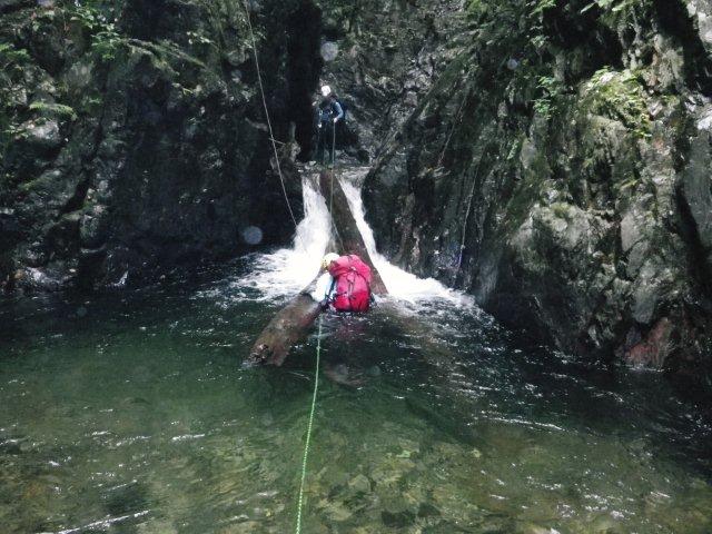 ここは泳いで倒木を攀じ登り突破。