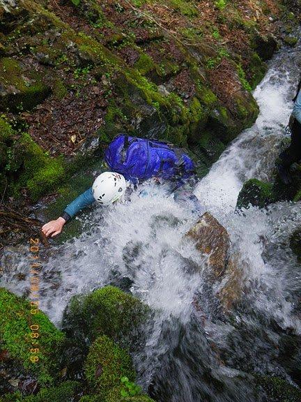シャワークライムを覚悟し水流の弱点を突いて次々と突破して行くが、やはり越えられない所は高巻きである。