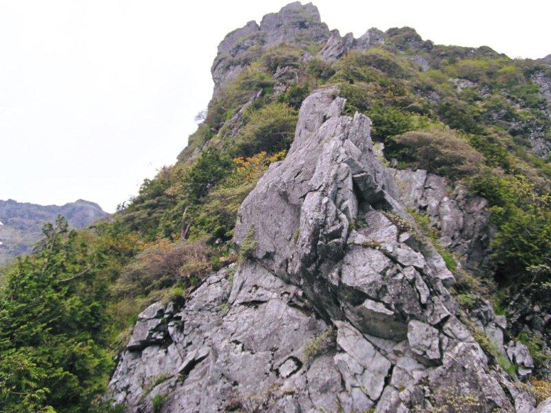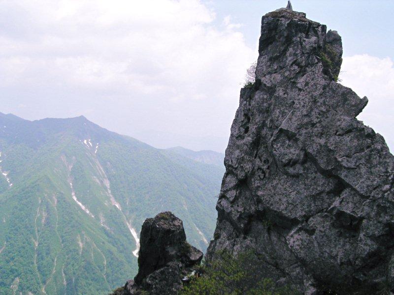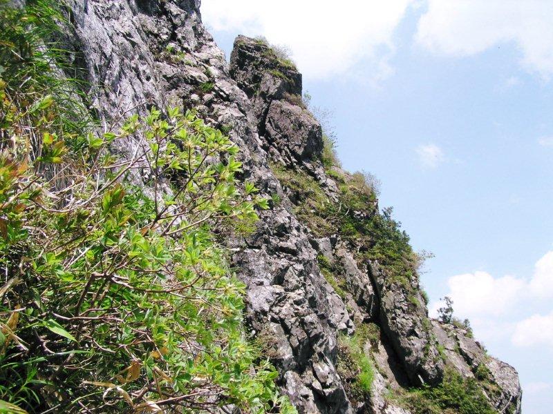 ちょっと、しょっぱいピッチであったがお昼前には衝立岩の頭、少し上のロウソク岩に到着した。 天気も回復し、登攀前に心配した岩の濡れも大したことはなかった。