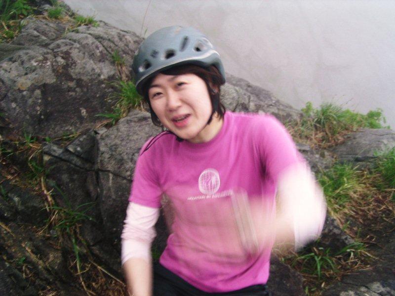 後5,6,7,8ピッチも交互にサクサクと登り、最後の9ピッチ目はルートを間違えてⅤ級ルートを祥子ちゃんがリード(^_^;)
