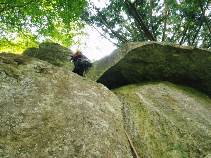 更に2ピッチ目は身体がすっぽりと入ってしまうチムニー状、背中や両手両足を突っ張って少しずつ登っていく。
