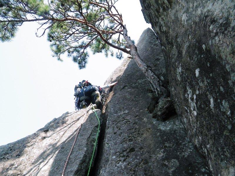 ここの核心は、1ピッチから3ピッチまでのクラックルート。