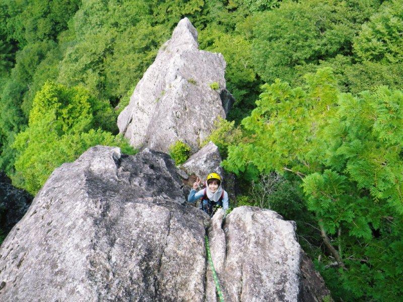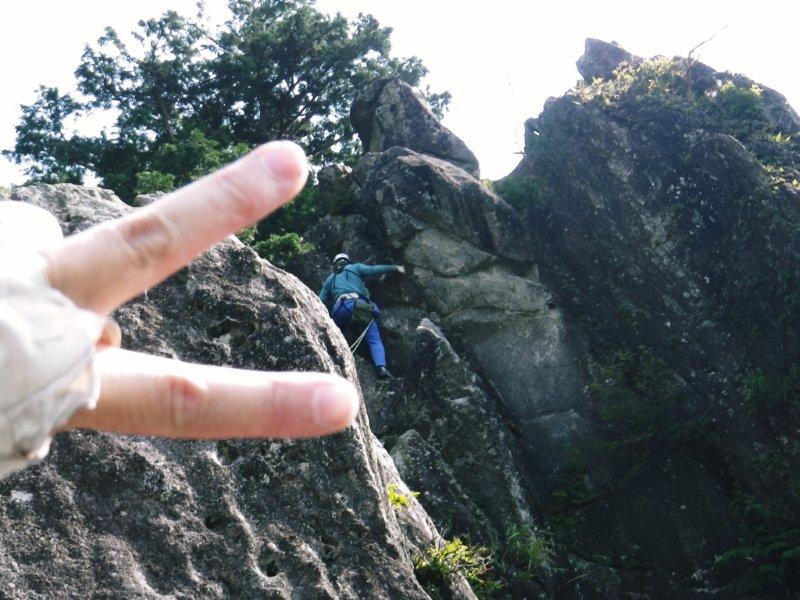 祥子ちゃんは、登攀途中で余裕のVサイン(^_-)-☆