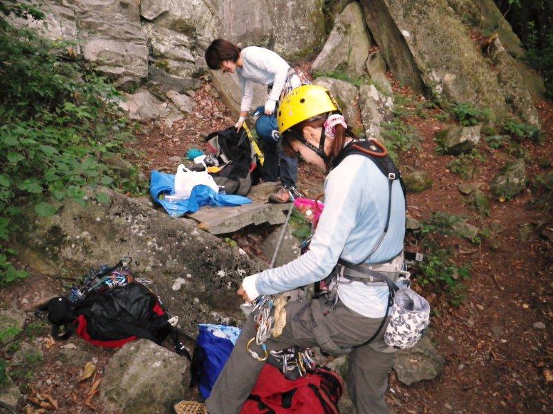 暑いので早々に懸垂でハサミの広場まで降下、そこからは登山道で駐車場まで。