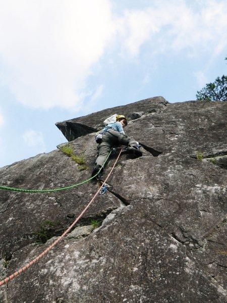 次はおいらのリード、ナイフリッジを軽快(暑い)に越えて高度を上げて行く、ビレイ中は上島さん(^_^)v